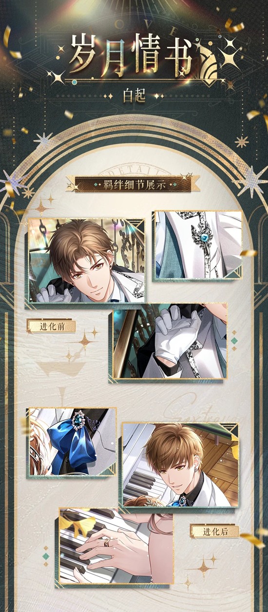 恋与制作人自选SSR羁绊白起 · 岁月情书预售开启~参与活动,自选获取SSR羁绊【白起·岁月情书】与配套服装!获取指定道具,还可将进化后画面进行映绘升级,展示特殊流沙&动态背景效果。一起来和小编看看吧~