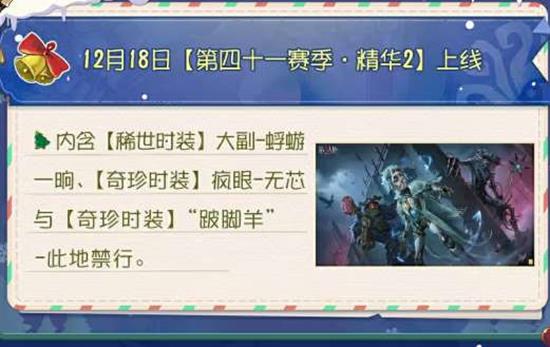 第五人格全新主线版本活动【昨日之笼】现已正式开放,限定剧情、全新时装与丰厚任务奖励正等待访客解锁年度重头戏“春节版本”前瞻直播定档12月19日18:00,届时将一次性曝光春节限定时装、新玩法、版本福利及更多惊喜,直播全平台同步放送。