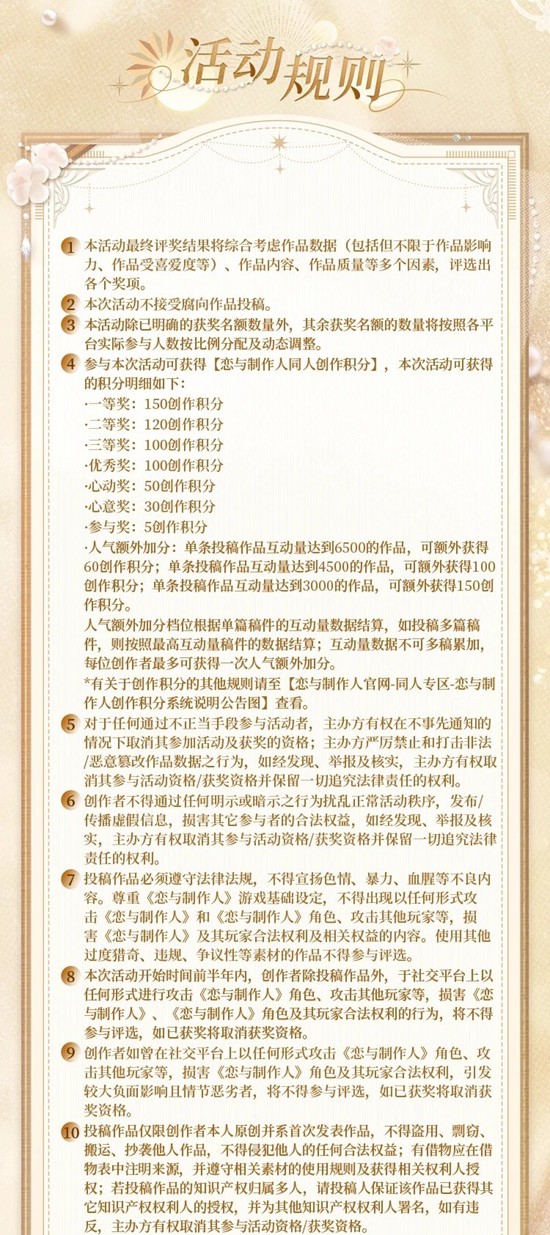 可以图文或视频的形式,发布与《恋与制作人》上述联动相关的衍生创意与趣味想法。