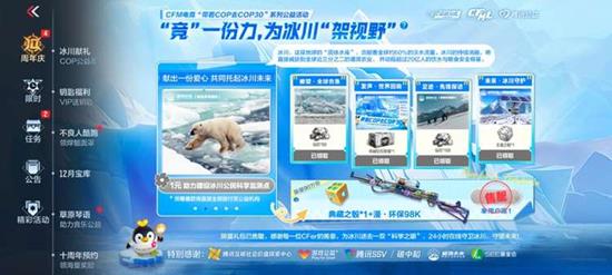 此外,CF手游还推出了“带着COP去COP30”系列公益活动,玩家可以通过参与这些活动来进一步支持公益事业。从8月的《冰川保卫者》到11月的《冰川公益礼》,已经有超过千万玩家参与并佩戴了“公益小红花”。这些活动不仅让玩家获得了游戏内的奖励,也让他们有机会为公益事业做出贡献。