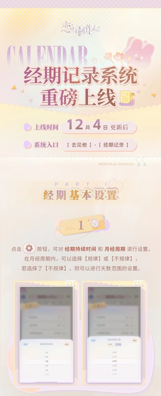 #恋与制作人 全新经期记录系统,重磅上线!
