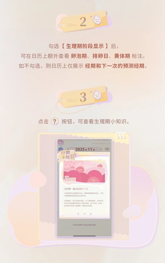 3.点击相应按钮,还可查看生理期小知识哦!