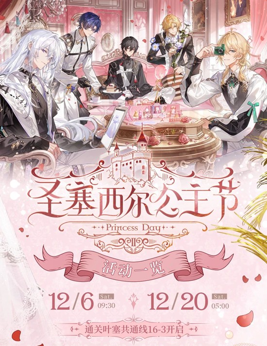 12月6日09:30 - 12月20日05:00,通过[主界面]-[花架]进入[圣塞西尔公主节II]。