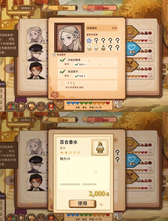 喜欢谁就每回合满地图找谁互动,一周目属性较低,可以专一一点,后面再全部拿下
