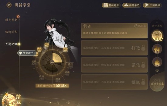 4.跟进大侠之路,根据【大侠之路】引导任务继续做几分钟,总评分将轻松达到70万左右.【对挖矿有利】
