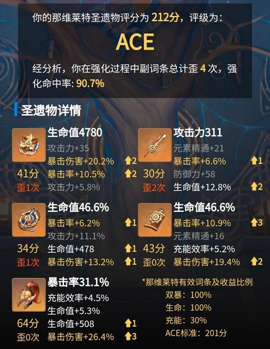 (从这里可以看出,其实那维莱特的暴击率不用堆我这么高,全心全意去堆暴击伤害就好了)