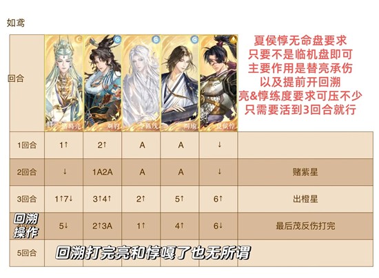 然后就想到上夏侯惇了,既能分担1号位葛亮受到的伤,又能开大让亮行动第二次提前一回合进入回溯