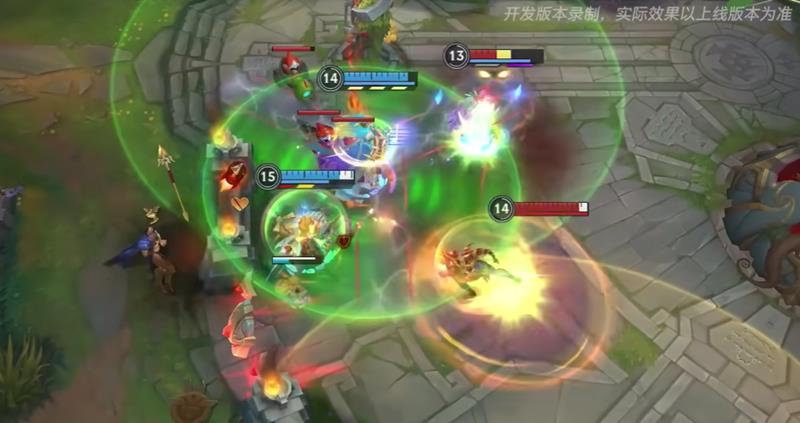 一技能“磷光炸弹”的命中率有所提升,冷却时间也从固定的7秒调整为随技能等级降低,从9秒逐步减少到6秒。这保证了库奇在游戏后期的技能释放频率。该技能的伤害计算方式也变为120%基础攻击力加成加上100%法术强度,让其在混合伤害的构成下输出更为可观。在英雄联盟手游的对局中,这个技能的清线和消耗能力都得到了加强。