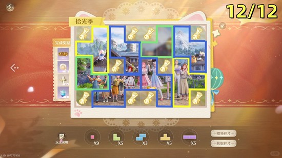 注意:这个是限时任务哦,需要注意时间,并且也要每天做点任务,获取碎片,因为需要完成12张图片,最好不要最后一两天才做。