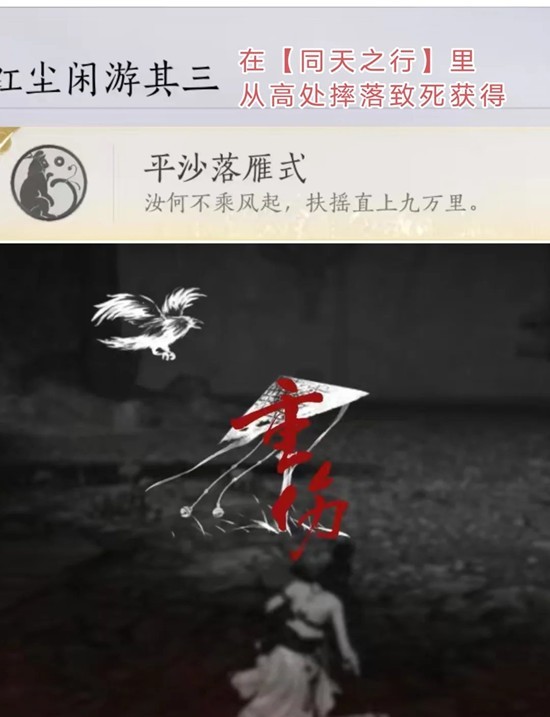 ❷做第三个成就的时候要注意看准时机,在用伞浮空耐力将近没有的时候,可以找准旋转平台边边角角降落,借力使用轻功直达门口