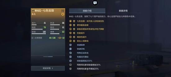 精准性提升、受击上扬降低、快速换弹、快速切枪等多项技能加持,这也让M4A1-七色宝葫是一款不错的武器。