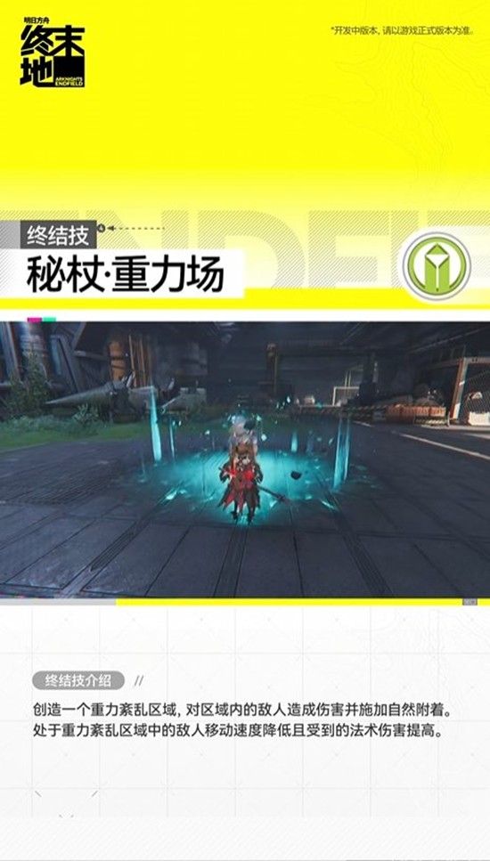 创造一个重力紊乱区域,对区域内的敌人造成伤害并施加自然附着处于重力紊乱区域中的敌人移动速度降低且受到的法术伤害提高。