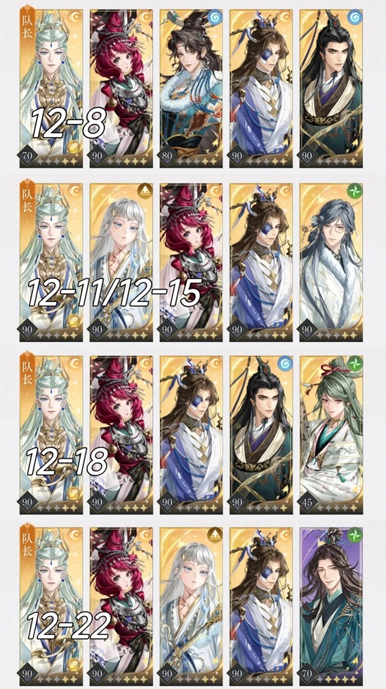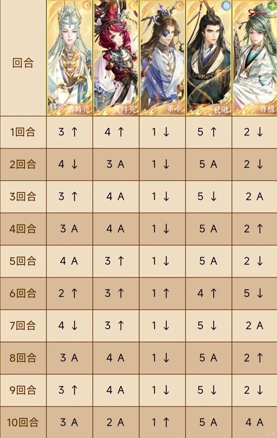 黄月英必备乾坤不能有羽化,诸葛亮要有天命沟通不能有往来/飞龙,安期可换其他输出(和前面几关不一样这关赌不了一点,必须要稳定出橙才能过,试了好几十次,没有乾坤+天命打不了)