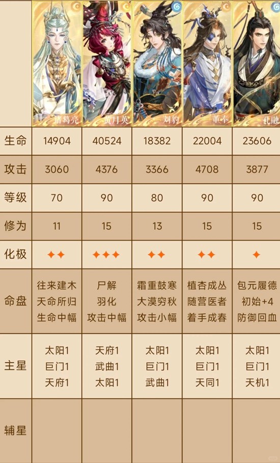 刘豹可以换其他任何输出,只有能站住活下来就行,命盘诸葛亮要有往来或者飞龙,黄月英要有羽化,靠他们俩一直打持续伤害就能过