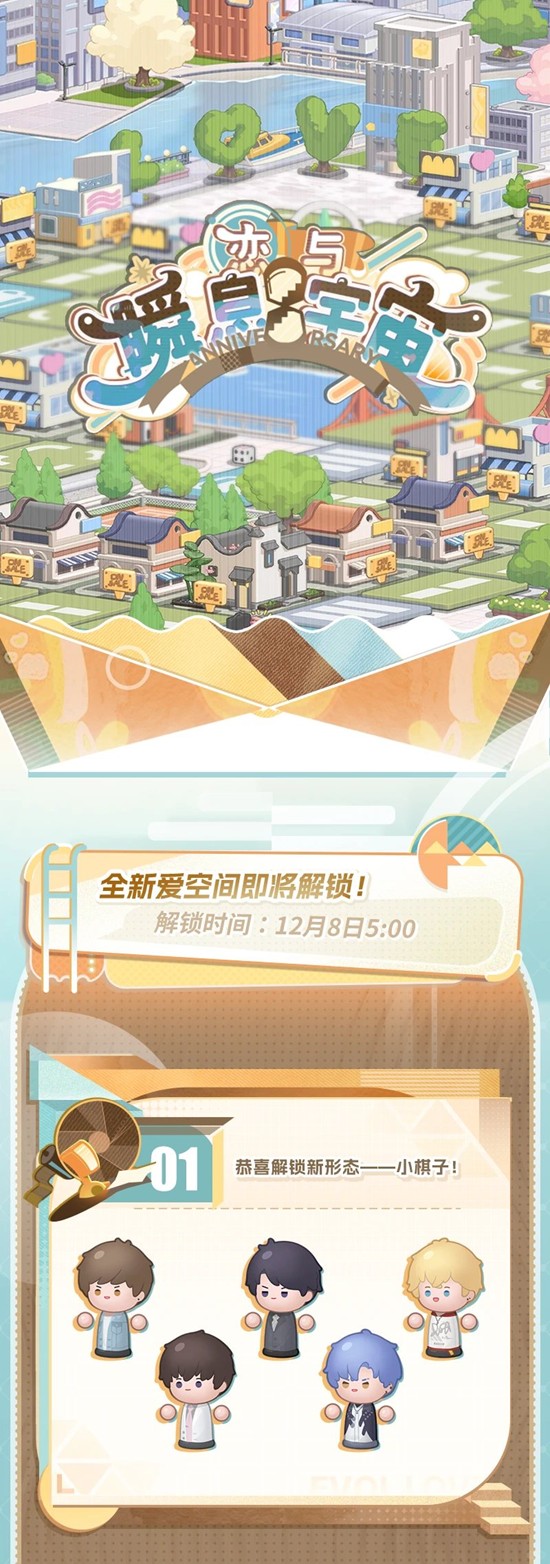 恋与制作人恋与瞬息宇宙,全新爱空间解锁:大富翁玩法明日开启~地图中包含多处可以互动探索的场景。点击不同的按钮,还可解锁多种互动和小事件剧情。变身棋子形态,和他一起游玩吧!完成当前爱空间的全部主线任务后,可切换至胖宝宝形态,随心拍照留念!一起来和小编看看吧~