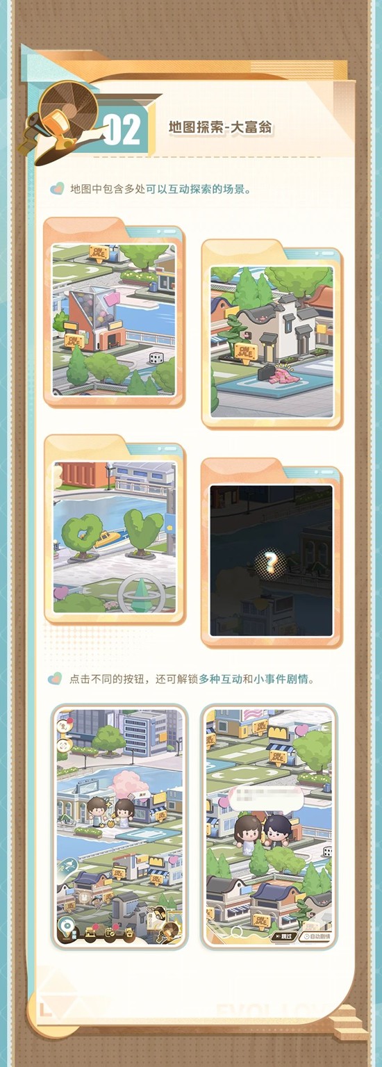 地图中包含多处可以互动探索的场景。点击不同的按钮,还可解锁多种互动和小事件剧情。