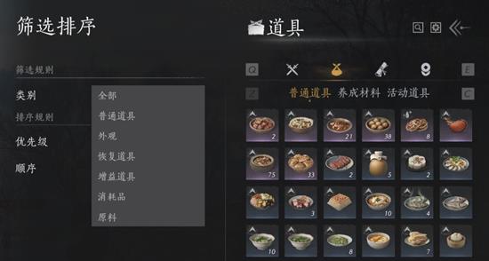 对于需要使用的道具,游侠们可以在「筛选排序」界面通过分类筛选进行查找。这一功能让道具查找变得更加高效,无论是装备、养成材料还是任务道具,都能快速定位,节省了大量时间。