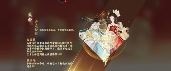 毒奶队最核心就是白居易和杨玉环天命,天命效果中有将部分溢出治疗转为持续输出的能力,这一数值与白居易星级和攻击力有关。(星级直接提升数值,攻击力就是锁住其伤害上限)