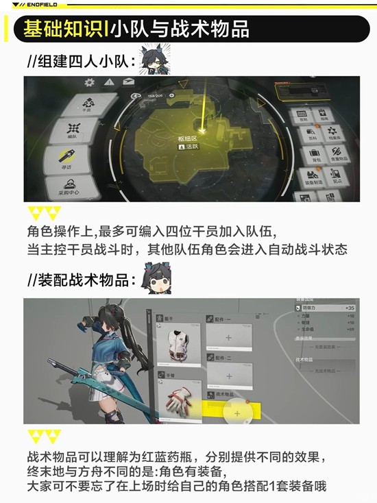 明日方舟:终末地游戏中玩家将成为终末地工业的管理员,率领您的干员们,保卫、拓展人类的边疆。探索塔卫二,收集资源,利用集成工业系统攻克险境,与您的同行者们一道,为人类建设更好的未来家园。那么小队、战术物品伤害类型与法术附着是什么呢?小编为你准备了一份攻略,一起来看看吧~