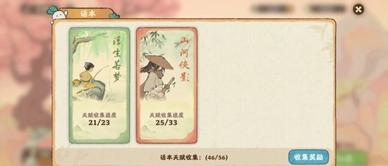 (3)每周要做的:桃源乡花铺订单,测运(开到迷签要去找宝藏),鱼铺订单,做菜订单(多提交地方菜,解锁新菜式),买画片,萌宠占卜,与商人交易,梦南柯(注意玩这个最主要的是收集开局词条,可以查看自己缺哪些,如图四,缺哪些就选哪些,进入人生后点击头像可以快速结束),赶山(赶山遇到鱼一定要钓,遇到第一次见的材料要先收集),每周制酒饮茶。