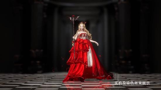 最大亮点在于多层次巨裙:内层黑纱刺绣火焰纹样,外层红皮以8000面模型精雕,每片裙瓣边缘隐藏动态灯带,随角色动作泛起赤红电光,仿佛炽焰在纤维里奔流。权杖顶端恶龙翼展可动,战斗姿态自动张开,为整套哥特礼裙再添杀气。