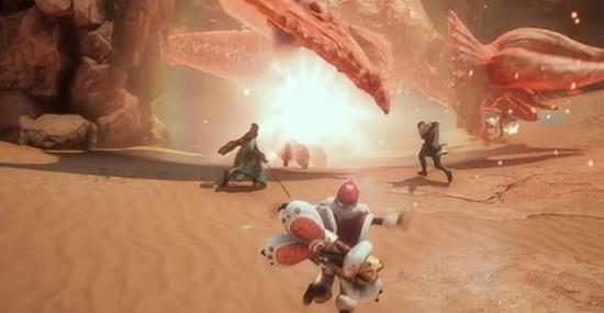 玩家操作佩佩时,可以通过保持距离并持续使用重弩炮进行射击来建立优势。她的攻击模式中包含了连速射击效果,能够在短时间内倾泻大量弹药,形成密集的火力网。这种战斗方式让佩佩在怪物猎人旅人的战场上成为了一个稳定的远程输出点。