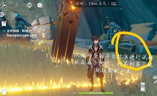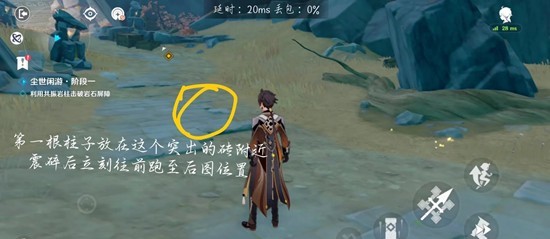 第一阶段如果图上方法行不通,在第一根柱子之后跑到共鸣石前再放一根