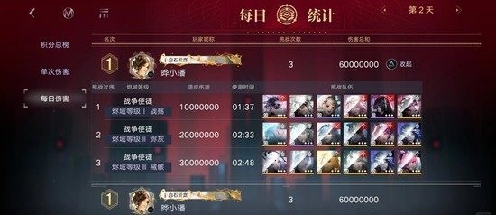 使徒做一些补充,首先是使徒随着难度增加血量也会增加,比如难度一只有1000w血,难度二就变成了2000w,而且这次没有补偿刀的机制,所以一定要算伤害,要不然会很亏,并且随着难度升高使徒第一次红圈的伤害也会变高,打难度二的时候提前用了一层背水,萦萦就被劈死了,所以最好等第一个红圈技能结束之后放背水
