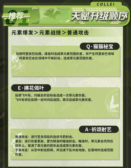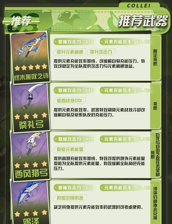 以上就是原神【月之二】角色柯莱培养攻略,柯莱怎么培养详细攻略的全部内容了,更多游戏资讯,攻略内容敬请关注切游网,您的支持是我们努力的动力!