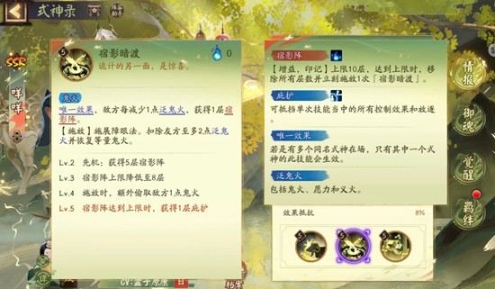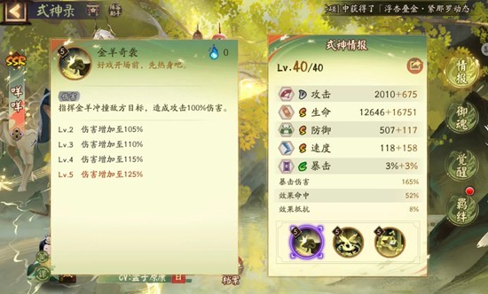 3.鬼金羊跳回合前会降低30%命中,这是个减益效果,有的式神如云外镜受到减益会拉条