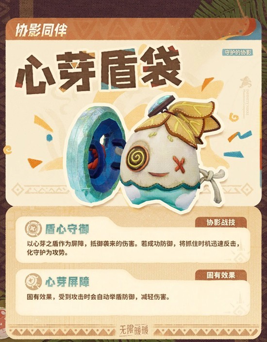 以心芽之盾作为屏障,抵御袭来的伤害。若成功防御,将抓住时机迅速反击化守护为攻势。