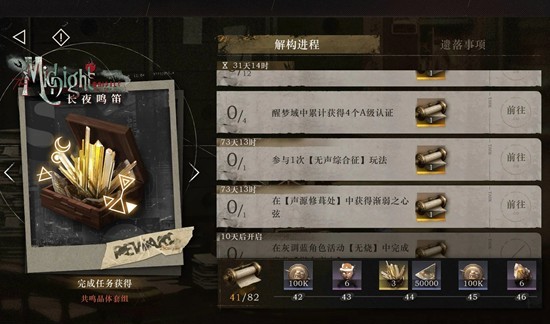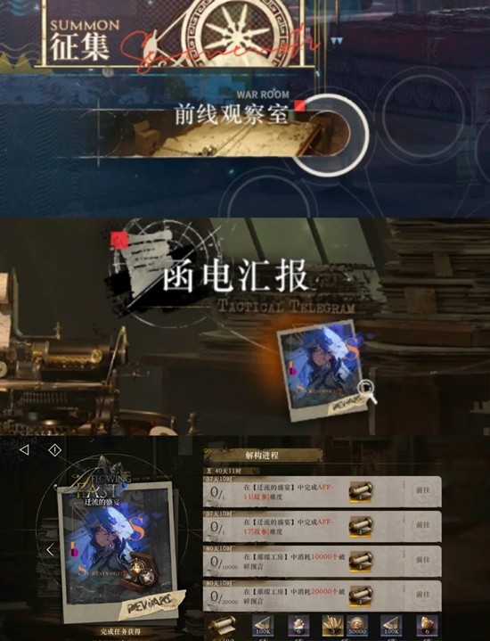 【函电汇报】:完成「解构进程」内任务可以获得「密函卷轴」,收集「密函卷轴」可以获得丰厚奖励。未收集的密函卷轴将会在下版本中通过完成【遗落事项】获得。