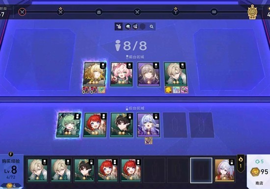 上8级找知更鸟、记忆主换周日。全队只有阿雅需要上3星,其他人2星就够用。因为都是低费角色,经济很容易发展起来。