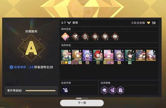 预期收益里,需要赢得一场敌人难度达100的战斗也能拿这套阵容过,这次真的生命脆弱游丝了。