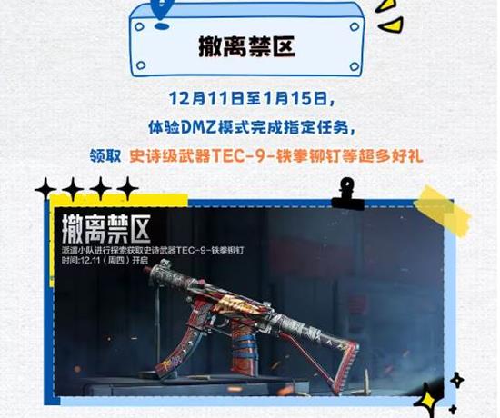 谍情破译得ICR-印速引擎,撤离禁区拿TEC-9-铁拳铆钉,训练营速通再领DRMK2-频控护盾与宋-禁区侦查者,打一局赚三武器。