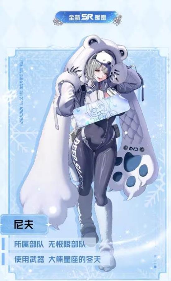 参与「奇迹雪夜」剧情活动,指挥官达成指定条件,即可获得全新5SR妮姬「尼夫」×3。