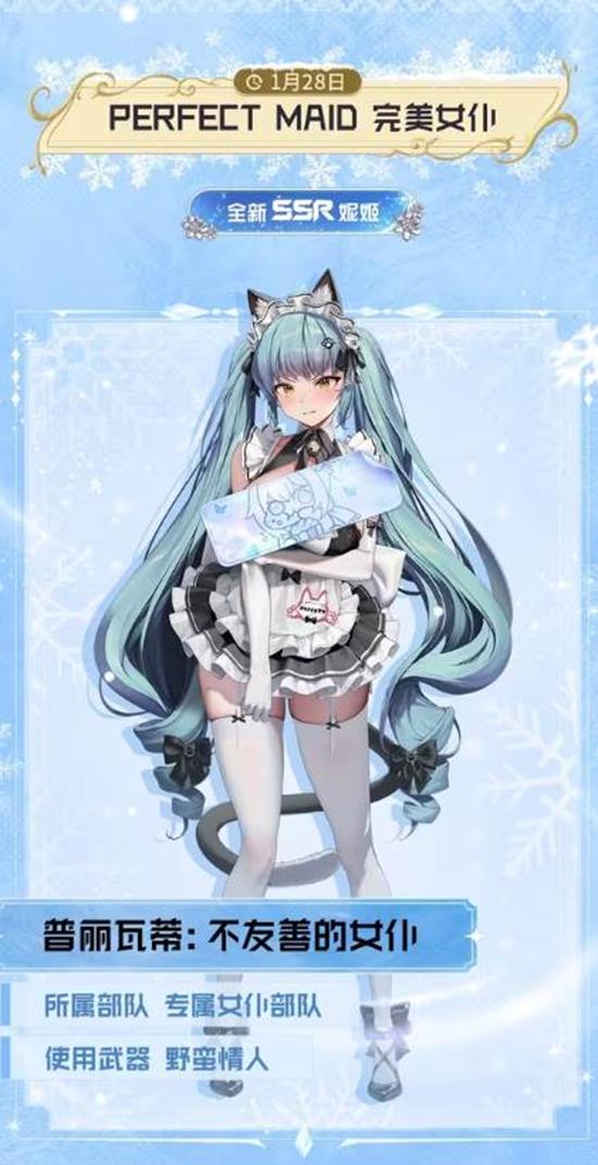 「PERFECT MAID完美女仆」活动将于1月28日开启,带来全新5SR妮姬「普丽瓦蒂:不友善的女仆」。