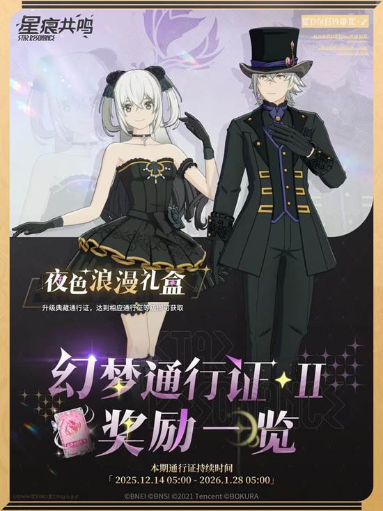星痕共鸣即将在12月14日开启全新的幻梦通行证活动,此次活动将带来一系列令人期待的奖励,包括全新的时装“夜色浪漫”。玩家可以通过升级典藏通行证来获取这些奖励,达到相应通行证等级即可解锁。