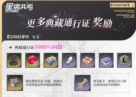 典藏通行证1000%回报:包括多种游戏内道具和资源。