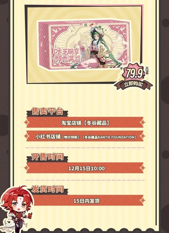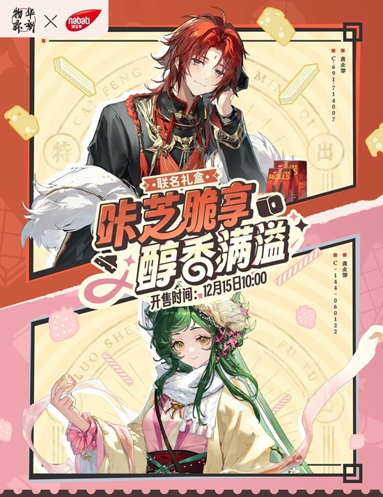 物华弥新×纳宝帝联动即将开启,联动礼盒12月15日开售!纳宝帝美味零食组合+对应款式器者联名周边组合+赠送联名兑换卡(可用于兑换游戏内虚拟道具),物华弥新×纳宝帝联名礼盒即将开售!咔嚓一口,香浓酥脆,满满的幸福感随香气蔓延~一起来和小编看看吧~