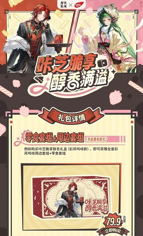 ▶礼盒内容:纳宝帝美味零食组合+对应款式器者联名周边组合+赠送联名兑换卡(可用于兑换游戏内虚拟道具)
