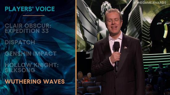 【玩家之声】完全由全球玩家线上投票产生,总投票数突破3200万票。官方数据显示,《鸣潮》在半决赛阶段即拿下48%的压倒性支持率,最终轮更以52.1%得票率锁定胜局。制作人杨帆在领奖时表示:“这份荣耀属于每一位‘倾听者’,是你们的声音让团队坚持创新与品质。”