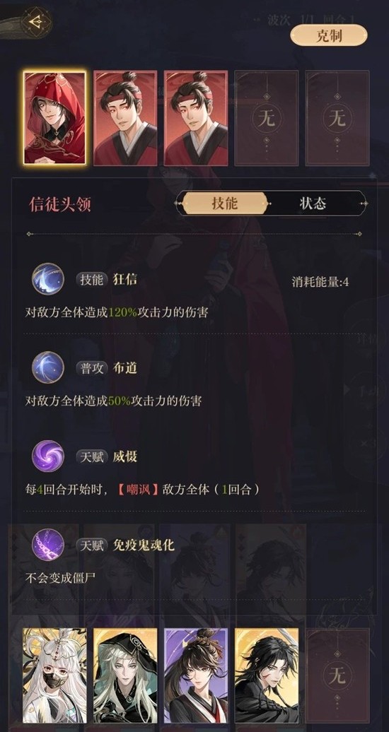 ●每4回合,头领会嘲讽我方密探+必须打一次对面小兵