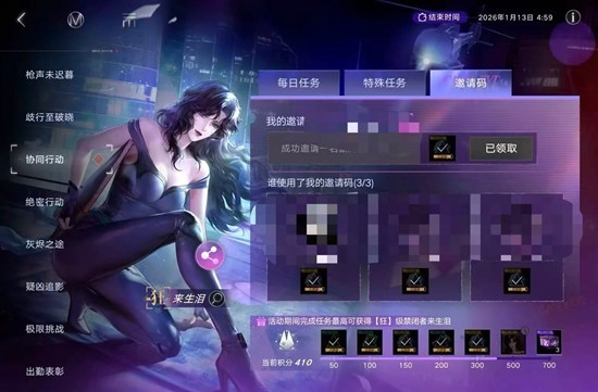 如果每日任务真的有个别无法完成,则需要完成特殊任务(通过助力)获得积分。助力需要被助力者进入游戏分享链接,助力者点击网址链接登录账号,点击“帮TA助力”即可