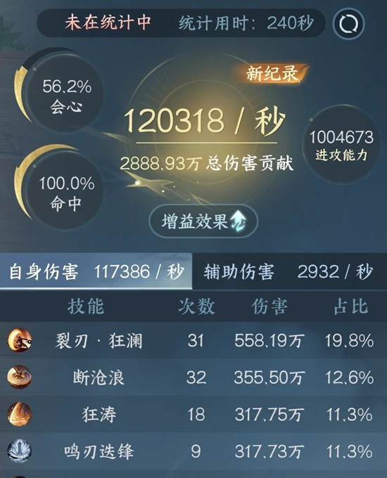 沧澜的会心建议入战后在2.7w以上,不够的可以从装备/内功/特质去调整