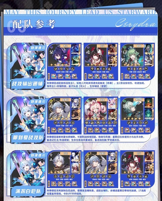 崩坏:星穹铁道游戏中,玩家将登上星穹列车,造访寓居宇宙的万象世界,携手形形色色的旅伴,解救“星核”引发的种种危机,对抗“星神”践踏文明的意图,除主角开拓者外,玩家还可以在战斗中操作其他角色,并可在“智库”中查看角色的语音、故事等。那么游戏中角色刻律德菈应该怎么培养呢?小编为你准备了一份攻略,一起来看看吧~