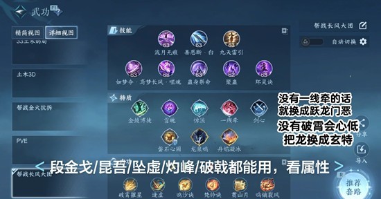 其他的内功,破霄/逢虚/铃铛/坠虚/灼峰/破戟/贯山月/段金戈/昆吾,选出更多好词条即可:(断金戈/昆吾优先级偏后一点,因为没有破梦 只吃一个幽火焚天 昆吾是因为长风击杀能力偏弱 )