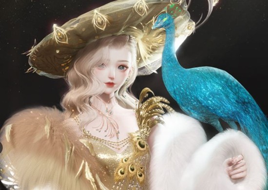 「金翎浮年」走雍容华贵路线,高侧开叉剪裁配合胸前三层宝石金属链,在灯光映射下呈星钻漫射;手持鎏金孔雀羽扇,扇面采用半透明材质,转动时可见金粉粒子飘落,动作音效自带低阶竖琴,贵族氛围直接拉满。