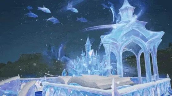 冰晶穹门为大型入口结构,推开触发霜风特效;驯鹿雪橇停在星霜小路,点击可坐乘并播放雪铃音效。人鱼雕像内置音乐盒,轻触即吟唱凛冬颂歌;冰鲸投影书页翻动时跃向夜空,尾鳍扫出流动极光,墙面自动晕染绿蓝光彩,实现“抬头见极光”的梦幻场景。