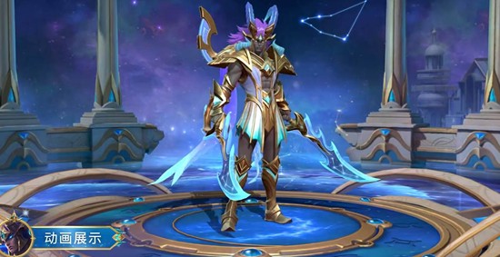 魔羯座标志性山羊角化作肩甲与头盔,黑曜石铠甲镶嵌冰蓝星轨,背部星图披风随战意波动闪耀。在出场中阿修罗脚踏星盘,寒铁锁链缠绕升格,化身为夜空中最亮的魔羯座主星。